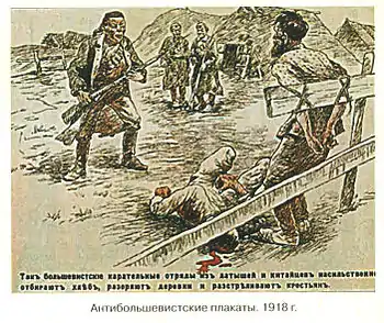 Кра́сный терро́р — комплекс карательных мер, проводившихся большевиками в ходе Гражданской войны в России (1917—1923) против социальных групп, провозглашённых классовыми врагами, а также против лиц, обвинявшихся в контрреволюционной деятельности. Служил средством устрашения как антибольшевистских сил, так и не принимавшего участия в Гражданской войне населения[1][2]. Террор и насилие большевики широко использовали против классовых врагов раньше, ещё до официального провозглашения декрета от 5 сентября 1918 «О красном терроре».[3]