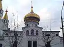 Церковь с несколькими куполами-луковицами является типичной формой русской церковной архитектуры, которая отличает её от архитектуры других православных народов и христианских конфессий. Исторически первыми примерами подобных русских церквей являются деревянный предшественник Софийского собора в Новгороде с 13-ю куполами (989)[5] и первый храм на месте каменной Десятинной церкви с 25-ю куполами в Киеве (989—996). Количество куполов обычно имеет символическое значение в русской архитектуре, например, 13 куполов символизируют Христа с 12 апостолами, а 25 куполов — ещё и с 12 пророками Ветхого Завета. В сравнении с византийскими (парусными) куполами, купола русских церквей обычно меньшего размера и часто покрываются позолотой или ярко окрашиваются.