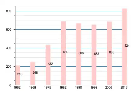 Численность населения коммуны в 2008 году составляла 759 человек[5], в 2011 году — 779 человек[6], а в 2013-м — 824 человека[4].