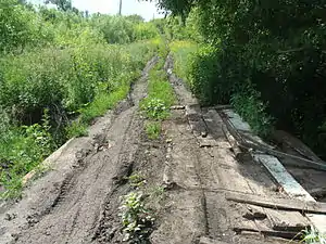 Село Кянда. Дорога в нижней части села. Обваленный мост