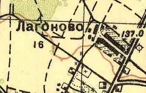 ЛАГОНЕВО — деревня госпожи Дренакиной, по просёлочной дороге, число дворов — 22, число душ — 47 м. п.(1856 год)[9]