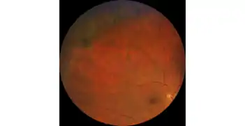 Фотография макулы пациента с диабетической ретинопатией и диабетическим отеком макулы