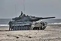 Нидерландский Leopard 2A6 на пляже Схевенингена. 15 сентября 2008 года.