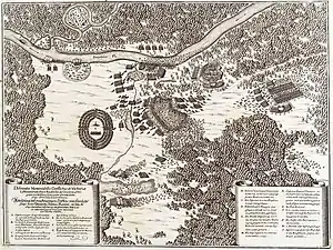 ![]() Битва под Лоевом в 1649 году. (Лоевский замок слева вверху.) | |