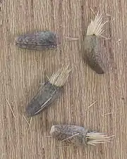 Слева направо: корзинка крупным планом; «крючки» под сканирующим электронным микроскопом (×100); семена | ||||||||||