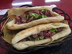 - Donkey Burger: a flaky, warm bun houses braised, shredded meat in this Hebei Province specialty (англ.). Atlas Obscura. Дата обращения: 18 июня 2020.