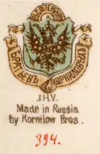 Маркировка «Made in Russia», впервые применённая фарфоровой фабрикой «Братьев Корниловых» из Санкт-Петербурга в 1893 г.