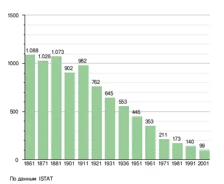 Население составляет 89 человек (2008 г.), плотность населения составляет 2 чел./км². Занимает площадь 41 км². Почтовый индекс — 12020. Телефонный код — 0171.