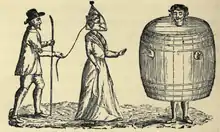 Первоначально маску позора надевали на сварливых жён, на женщин, уличённых в проявлении грубости в общественном месте. Маска представляла собой металлическую конструкцию, надевавшуюся и закреплявшуюся на голове. В лицевой части конструкции находился острый металлический кляп, который при попытке говорить серьёзно ранил язык и губы наказанной, так что говорить в такой маске фактически не представлялось возможным.