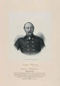 | Награды и премии | Орден Святой Анны 4-й ст. (1828), Орден Святой Анны 3-й ст. (1829), Орден Святого Георгия 4-й ст. (1850), Орден Святого Владимира 4-й ст. (1854), Орден Святого Георгия 3-й ст. (1855), Орден Святого Станислава 1-й ст. (1864), Орден Святой Анны 1-й ст. (1866) |
