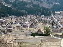 Традиционные жилища в этой местности отличаются крутыми крышами из соломы. Высокие крыши позволяли обходиться без дымохода и устраивать обширные складские помещения, а также — в первую очередь — защищать дом от попадания влаги. Благодаря конструкции крыши снег или дождь сразу скатывались вниз, не задерживаясь, благодаря чему крыша была практически «непромокаемой», а солома, покрывающая её, почти не гнила. Основным занятием местных жителей было разведение шелкопряда, так что верхние этажи жилищ искусно приспособлены для нужд шелкопрядения. Область ниже первого этажа часто использовались для сушки селитры, сырья для производства пороха. Деревни внесены в Список всемирного наследия ЮНЕСКО как «выдающийся пример традиционного образа жизни, прекрасно приспособленного к окружающей среде и местным социальным и экономическим условиям».