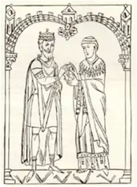 ![]() Миро и Мартин Брагский. Из рукописи Мартина «De virtutibus quattuor» 1145 года (теперь в Австрийской национальной библиотеке) | |