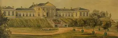 Расцвет Монрепо связан с именем президента Санкт-Петербургской Академии наук Людвига Генриха Николаи, который приобрел имение в 1788 году, а после ухода в 1803 году в отставку, всецело предался украшению и воспеванию в стихах любимого поместья. По проекту его друга, итальянского архитектора Жозефа Мартинелли[7], прежний деревянный Усадебный дом перестраивается в стиле классицизма (1798—1804 годы), строится Библиотечный флигель (1804 год) и другие помещения.