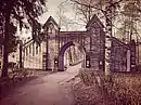 | Главные ворота | 60°43′49″ с. ш. 28°43′32″ в. д. | Въездные деревянные ворота в неоготическом стиле, украшенные стрельчатыми башнями и металлическим декором. |