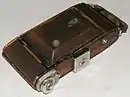 - Взвод затвора и перемотка плёнки раздельные. Перемотка плёнки по цифрам на ракорде рольфильма. На задней стенке камеры имеется окно с красным светофильтром.