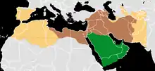 - Усилия Усмана по сохранению контроля курайшитов над халифатом и установления контроля над слабой финансовой системой Умара[39] привели к назначению его близких родственников из Бану Умайя и родительского клана Бану Абд Шамс наместниками большинства регионов халифата. Среди этих назначенцев был сам Муавия, наместник Сирии и эль-Джазиры, который приходился Усману кузеном, Омейяды Аль-Валид ибн Укба и Саид ибн аль-Ас, которые последовательно правили Эль-Куфой. Бану Абд Шамс был представлен двоюродным братом Усмана по материнской линии Абдаллахом ибн Амиром, который правил Оманом, Али ибн Ади ибн Рабиа, властителем Мекки, и сводным братом Усмана Абдуллахом ибн Садом, правившим Египтом. В принятии внутренних решений халиф полагался на своего кузена Марвана ибн аль-Хакама из дома Омейядов[40]. Усман потребовал, чтобы излишки доходов от завоеванных земель, которые были объявлены Умаром государственной собственностью, но оставались под контролем соплеменников-завоевателей, были отправлены в Медину. Он также предоставил землю своим родственникам и другим известным курайшитам[41].