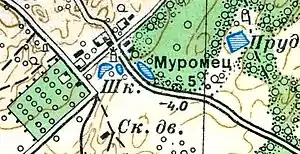 МУРОМИЦЫ — мыза владельческая при колодце, по левую сторону 1-й Самерской дороги, от Ямбурга в 35 верстах, число дворов — 4, число жителей: 16 м. п., 18 ж. п. (1862 год)[14]