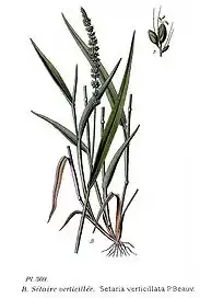 Мутовчатое расположение органов у некоторых растений (слева направо): Сциадопитис мутовчатый, Вороний глаз четырёхлистный, Сетария мутовчатая, Акация мутовчатая | ||||||||||