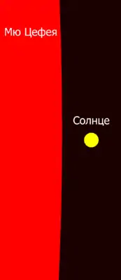 ![]() Сравнительные размеры μ Цефея и Солнца | |