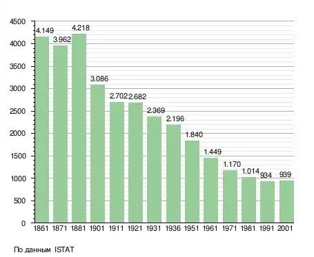 Население составляет 1021 человек (2008 г.), плотность населения составляет 34 чел./км². Занимает площадь 30 км². Почтовый индекс — 16040. Телефонный код — 0185.
