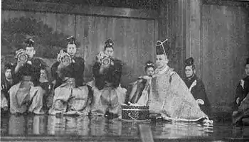 С началом Реставрации Мэйдзи тесно связанный с сёгунатом театр но оказался не нужен обществу. Актёры, лишённые государственного жалования, в поисках заработка стали разбредаться по стране; спектакли организовывались редко[82][83]. В таких условиях оставались энтузиасты, продолжавшие заниматься любимым искусством. Так, проживавший в Токио актёр Умэвака Минору с 1870 года трижды в месяц устраивал спектакли на своей домашней сцене[84][85], вокруг которой могло расположиться до пятнадцати зрителей[86]; ежемесячные спектакли давал Конго Юити[87].
