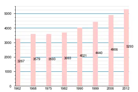 | 1962 | 1968 | 1975 | 1982 | 1990 | 1999 | 2005 | 2006 | 2010 | 2011 | 2012 |