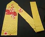 - Мару-оби, старинный жёсткий парчовый пояс. Носится с особенно торжественными кимоно.