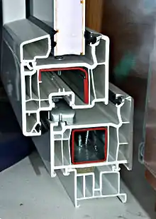 Погонажное изделие из дерева, поливинилхлорида (ПВХ), стеклопластика, стали или алюминия, либо их комбинаций, из которого производятся элементы окон — рамы и створки, называют «профилем».