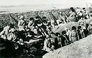 Австралийский снайпер стреляет из винтовки с перископом во время дарданелльской операции.