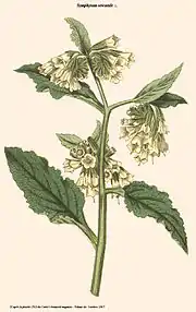 - Symphytum ×uplandicum Nyman — Окопник упландский = [Symphytum officinale × Symphytum asperum][7]