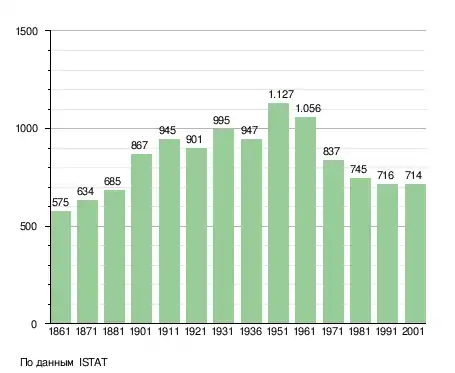 Население составляет 714 человек (2008 г.), плотность населения составляет 40 чел./км². Занимает площадь 18 км². Почтовый индекс — 24020. Телефонный код — 035.