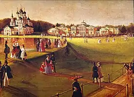 ![]() Неизвестный художник. «Прогулка в Останкине». I пол. XIX в. Холст. Масло. Фрагмент | |