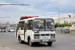 - ПАЗ-32053 РАП — вариант бензинового автобуса с белорусскими комплектующими. КПП: ГАЗ мех., 4-ст [10]