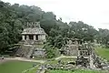 Сохранились остатки дворца площадью 92 x 68 м (группа зданий, расположенных вокруг двух больших и двух малых дворов), квадратная в плане башня и три храма, традиционно именуемые храм Солнца, храм Креста и храм надписей. Галереи и внутренние помещения украшены гипсовыми и каменными рельефами.