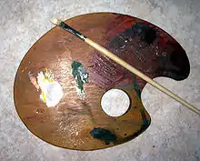 Палитра (сред. ниж. нем. palitter, в свою очередь от др. франк. paleutr, лат. paleterum — «пластинка», «дощечка»[1]) — небольшая тонкая и лёгкая доска четырёхугольной или овальной формы, на которой художник смешивает во время работы чистые краски для получения необходимых цветов. Часто палитра имеет отверстие для большого пальца руки.