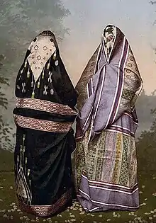 В XIX веке таджички-мусульманки надевали паранджу, покидая дом[6]. С 2017 года в Таджикистане запрещено носить головные уборы в «нетаджикском» стиле, который предполагает завязывание платка за затылком[7].