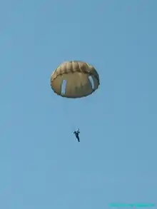 Парашю́т (фр. parachute, от греч. para — против и фр. chute — падение) — устройство в форме зонта из ткани или другого мягкого материала, к которому стропами прикреплена подвесная система или груз. Служит для замедления движения предмета в воздухе. Парашюты используются для прыжков из летательных аппаратов (или с фиксированных объектов) с целью безопасного спуска и приземления людей (грузов), для торможения летательных аппаратов при посадке[1].