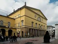 | Дворец Пилотта | Площадь Маркони. На заднем плане - остатки дворца Пилотта | Мемориал Верди | Монумент в память о войне |