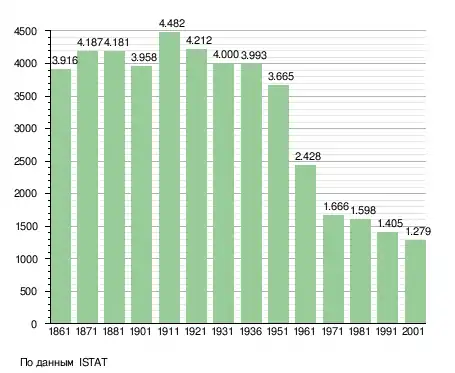Население составляет 1269 человек (2008 г.), плотность населения составляет 18 чел./км². Занимает площадь 72 км². Почтовый индекс — 67030. Телефонный код — 0864.