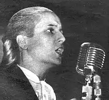Мари́я Э́ва Дуа́рте де Перо́н (исп. María Eva Duarte de Perón, также Эвита (Evita); 7 мая 1919, Лос-Тольдос — 26 июля 1952, Буэнос-Айрес) — первая леди Аргентины, вторая жена 29-го президента Хуана Перона.