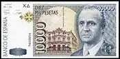 10 000 песет | Серый | Хуан Карлос I на фоне Дворца Линарес | Джордж Хуан | |