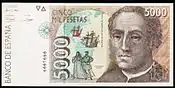 5000 песет | Коричневый | Христофор Колумб | Армиллярная сфера | |