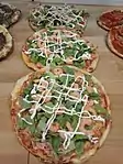 В последнее время стали популярны вегетарианские пиццы, которые могут быть как без мяса, молочных продуктов, и даже без применения пшеничной муки, которая используется для приготовления теста. Само тесто делается из измельчённого семени льна, моркови, сельдерея и кабачков. Все компоненты смешиваются, формируется корж и высушивается в приборе, испаряющем влагу.