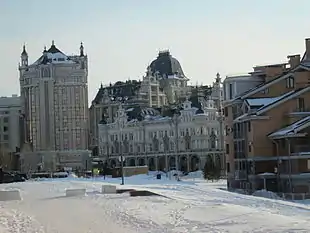 Помимо административных зданий, важнейшей особенностью площади стали сооружённые в конце 1990-х начале 2000-х годов на её западной границе жилые здания элитного класса с развитыми и богатыми архитектурными формами — дворцовый комплекс «Ренессанс». Окончательно архитектурное обрамление площади завершится с достройкой среднего здания дворцового комплекса в 2011 году и бизнес-центра «Султан-Галиевский» несколько позже.