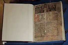 ![]() Пролог, сентябрь — январь («Лобковский Пролог»). Писец Тимофей, Новгород, 1262 или 1282 год. Пролог сентябрьской половины года включает житийные повести и слова, распределённые по дням года. Из русских чтений — Сказание об убиение Глеба (5 сентября). | |