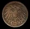 2 пфеннига | 20 | 3,333 | 1,5 | гладкий | 95 % меди, 4 % олова и 1 % цинка | 1904—1908, 1910—1916 | Суммарно[Тиражи 5] — 151 512 768[96] | 1.03.1942[92] |