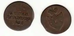 1 пфенниг | 17,7 | 2 | 1,06 | гладкий | 95 % меди, 4 % олова и 1 % цинка | 1890—1916 | Суммарно[Тиражи 2] — 1 124 514 443[93] | 1.03.1942[92] |