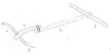 Схема простейшего одноручного орала: 1) ярмо , 3) грядиль, 5) лемех