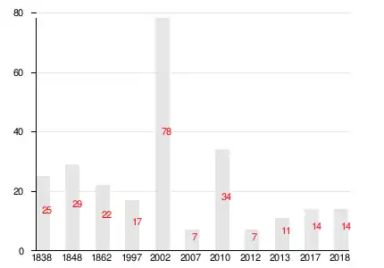 | 1838 | 1848 | 1862 | 1997 | 2002 | 2006[16] | 2007[17] |