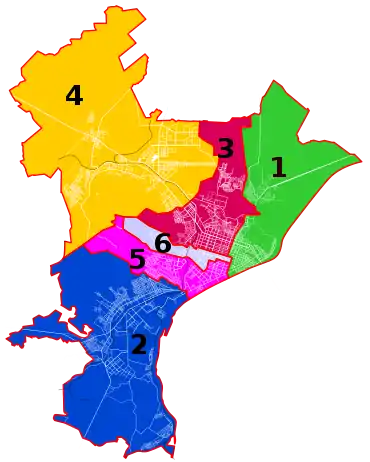 | Внутреннее деление | 6 городских районов | ||||